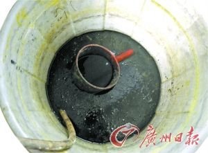 一个装有石蜡的缸边,竟然写有一行警告员工不得倒掉“老料”(用过的石蜡)的“提醒”(见上图),这些石蜡散发着恶臭。