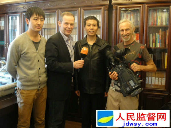 朱瑞峰记者接受德国电视二台东亚首席代表韩诚(左二)专访