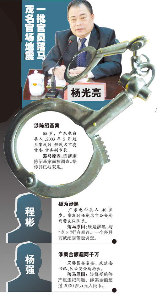 Tags:广东茂名 官场地震 常务副市长杨光亮 陈绍基案 被调查