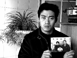 2月1日,周彦峰手持父母的照片讲述父母的遭遇。