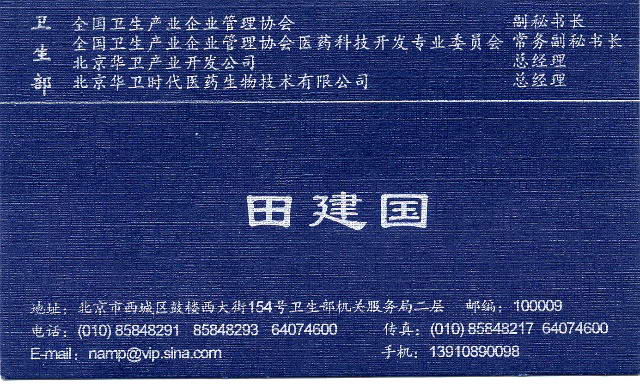 记者根据田建国名片上的电话致电卫生部全国卫生产业企业管理协会询问,对方称:“我单位有此人,华卫时代不是我们协会的公司,具体情况工商局一问就知,那是他个人的公司。”