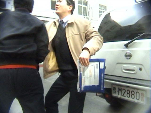 以下图片为:记者用隐蔽摄像机拍摄的李新华与警察搏斗的画面。