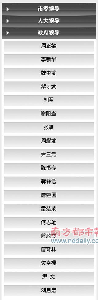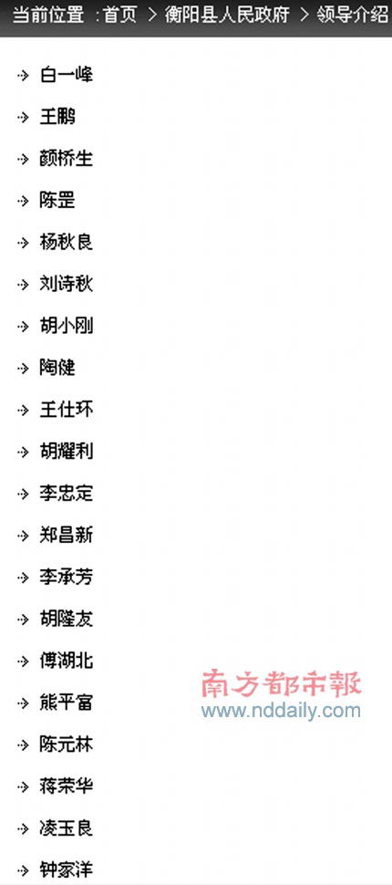 南都记者在常宁市政府网站和其所属的衡阳市政府网站上也发现了长长的领导名单,常宁市政府网站上列出的市政府领导共有19人,包括了1名市长,1名常务副市长,5个副市长,2个市长助理,2个正县级干部,4个副县级干部,1个调研员,2个副调研员和党组成员、办公室主任。