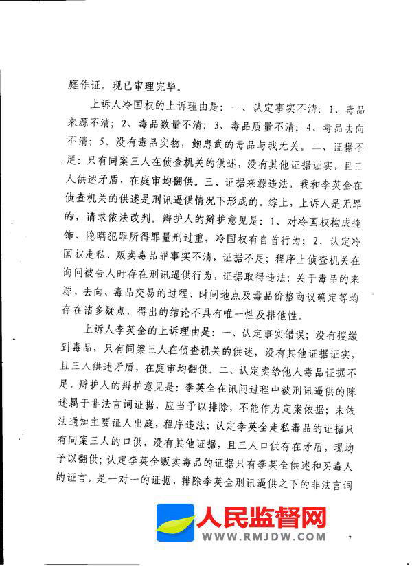 人民监督网特派记者参加庭审旁听,以“杨俊泽律师就冷国权贩毒案控告丹东公安刑讯逼供”、“解密丹东市公安滥施酷刑炮制“跨国贩毒”假案”等为题连续做了十多篇报道,人民监督网记者采用推特、论坛、博客、微博群建、群发的方式向世界互联网披露该冤假错案,得到了广大网民的支持。