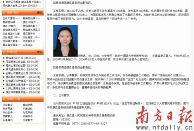 该网帖最早由网友“奥巴驴163”于18日下午在天涯论坛发布,随后被各大论坛网站转载。该网友在网帖中,列举了澂江县2011年公开选拔挂职干部存在的三大疑点。