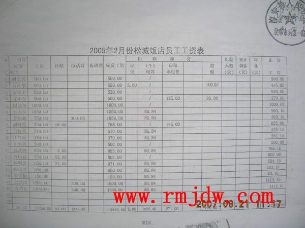 2006的11月27日,原告到淳安县人民法院要求复制被告提供的工资表,复制以后,才发现被告两次提供的工资表都是伪造的。从中发现,被告共剥削原告合法报酬8000多元。