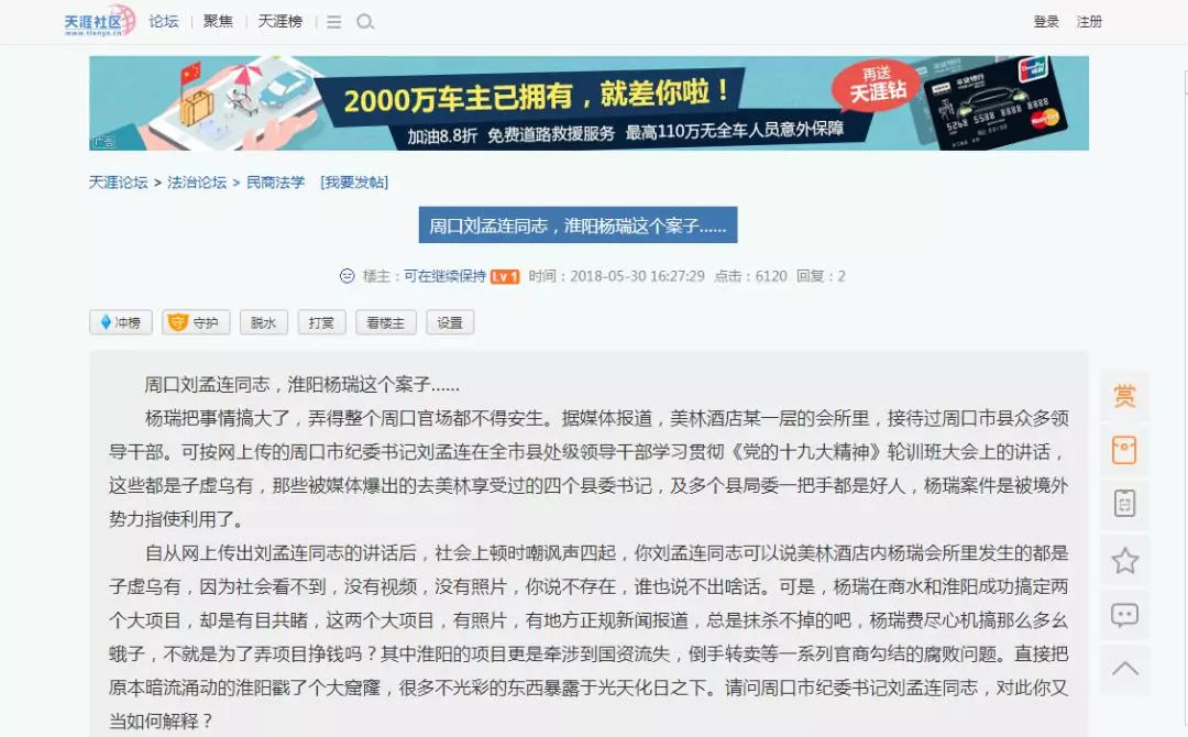 记者在天涯社区等多个社交媒体搜索刘孟连发现,有网友反映杨瑞的事情在周口产生的影响巨大,严重损害了地方政府和领导的形象,并表示希望刘孟连就杨瑞一事直面公众。