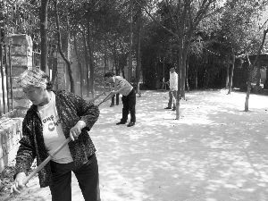 成都市金沙派出所民警徐勇(右二)为社区居民铺水泥地坪。本报记者 杨万国 摄
