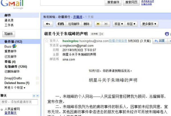 朱瑞峰关于北京理工大学胡星斗教授声明的回应_人民监督网
