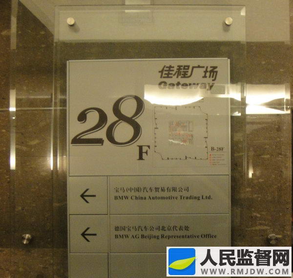 人民监督网记者指着门口的标牌说:“你们门口挂着德国宝马集团北京代表处的牌子难道你没有看到吗?”